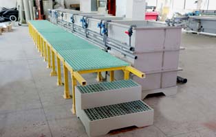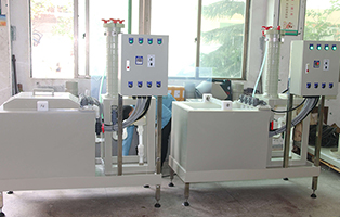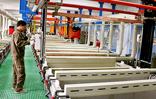 • 電鍍設備是按一定電鍍工藝過程要求將有關鍍槽、鍍件提升傳運裝置、電器控制裝置、電源設備、過濾設備、檢測儀器、加熱與冷卻裝置、空氣攪拌設備等組合為一體,通過機械和電氣裝置自動完成電鍍工